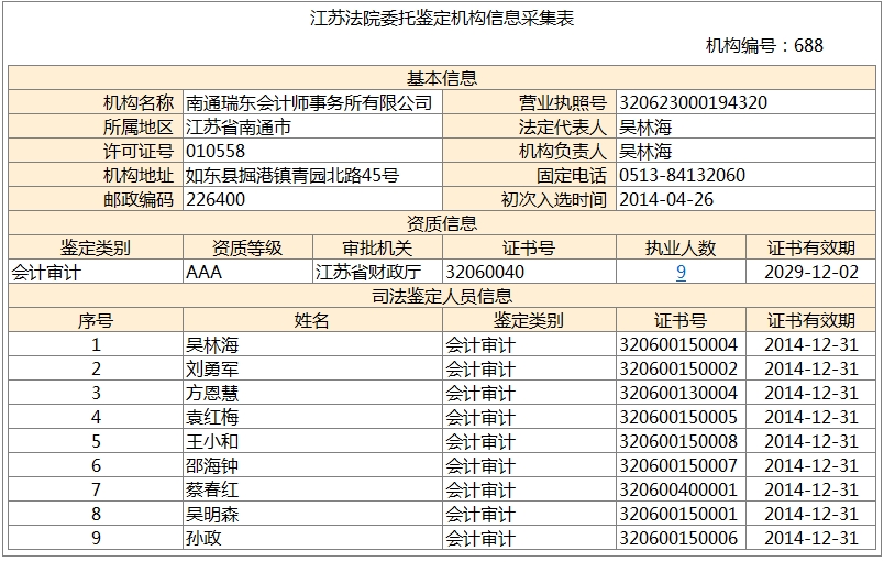 南通瑞東會計(jì)師事務(wù)所、南通東瑞稅務(wù)師事務(wù)所均進(jìn)入《國家司法鑒定人和司法鑒定機(jī)構(gòu)名冊》