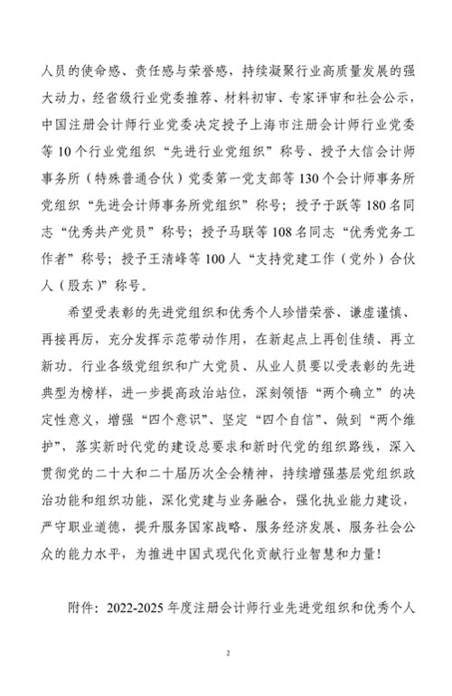 近日,收到中共中國(guó)注冊(cè)會(huì)計(jì)師行業(yè)委員會(huì)文件《關(guān)于表彰2022-2025年度注冊(cè)會(huì)計(jì)師行業(yè)先進(jìn)黨組織和優(yōu)秀個(gè)人的決定》,我所主任會(huì)計(jì)師吳林海同志榮獲注冊(cè)會(huì)計(jì)師行業(yè)“優(yōu)秀黨務(wù)工作者”稱號(hào)。